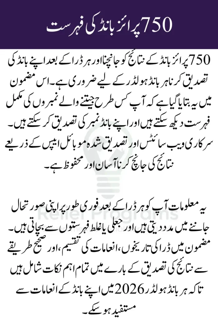 The 750 Prize Bond List 2026 provides the latest winning numbers, draw schedules, and verification methods for investors and bond holders. This article explains how to check your 750 prize bond results online, understand prize distribution, and verify winnings using official tools.