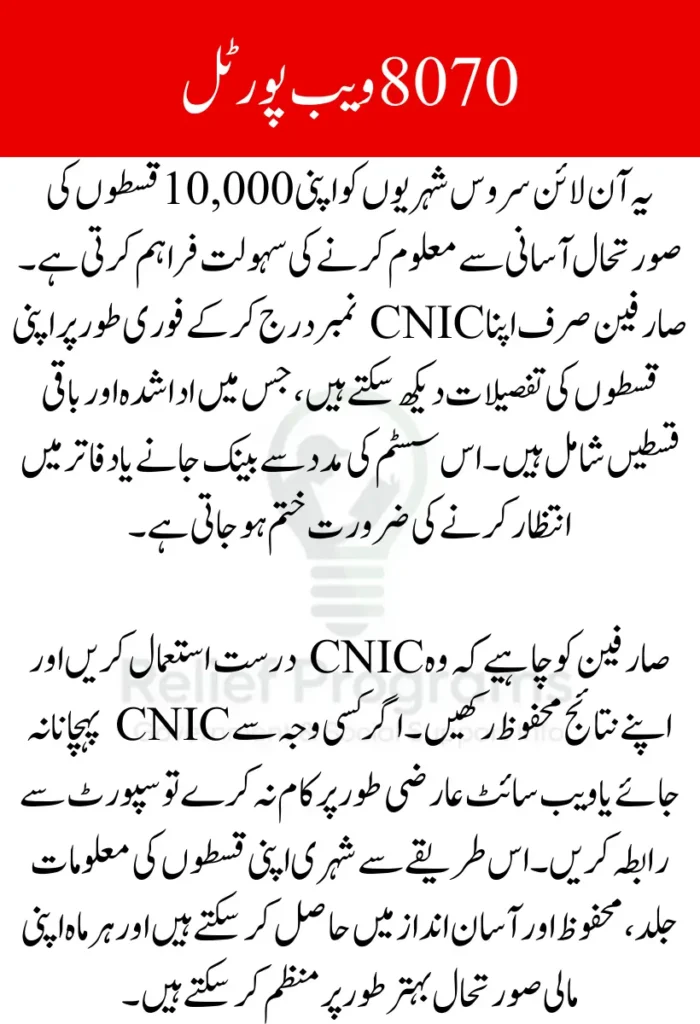 Accessing the 8070 Web Portal is simple. Users can visit the official website on any smartphone or computer. After entering the CNIC number, the system verifies the credentials and displays the complete installment status. The portal ensures that all information is secure and only accessible by the registered user. Notifications for upcoming installments are also available, helping users stay up to date with their payment schedules.