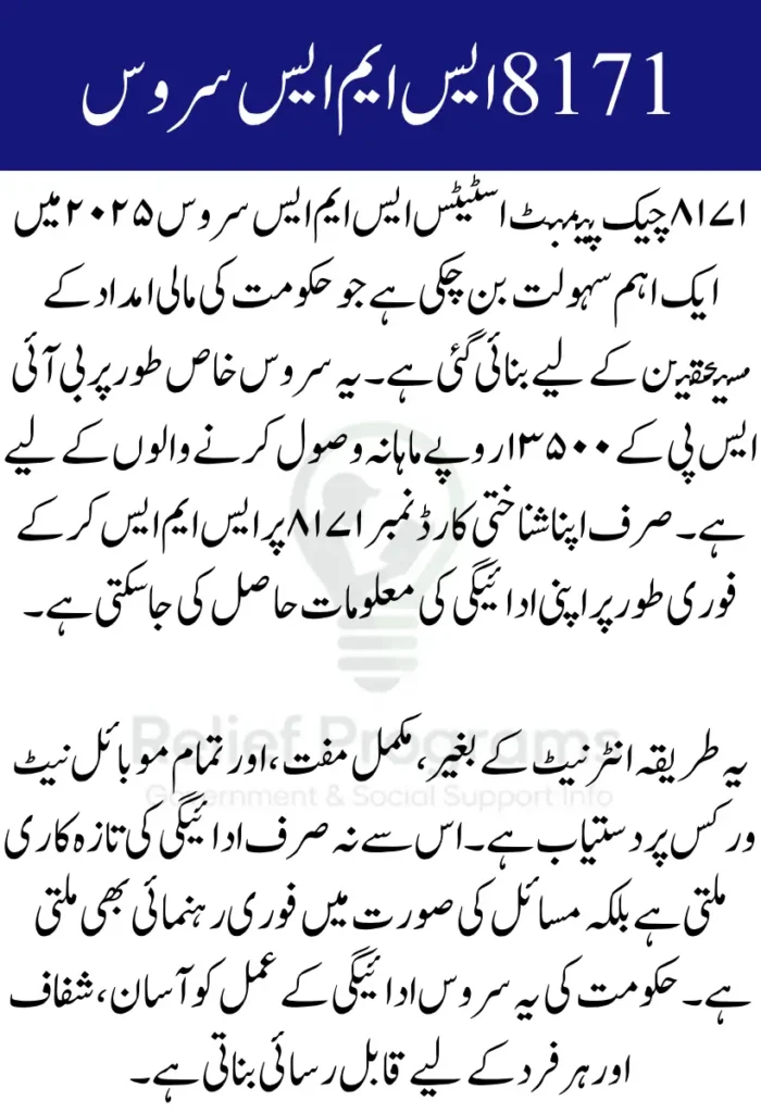 This easy-to-use system works on all mobile networks in Pakistan. Even if you don’t have internet access, you can check your 8171 payment status anytime, anywhere.