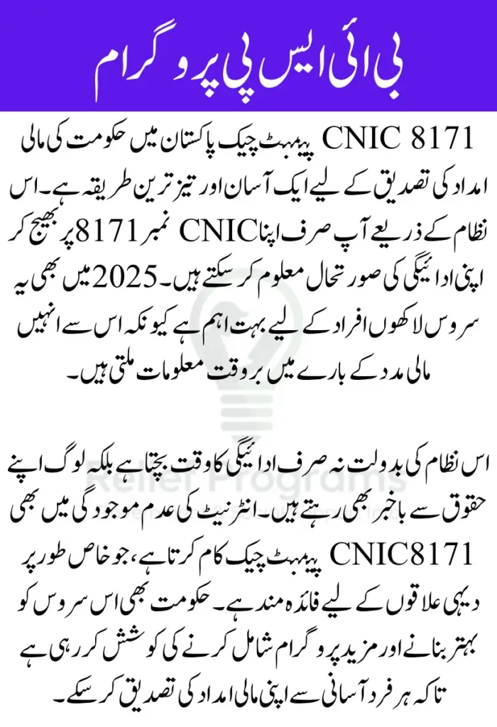BISP Program remains one of the largest cash assistance programs in Pakistan. The 8171 Payment Check helps beneficiaries quickly verify the status of their 13500 PKR monthly stipend. Many people find this method more trustworthy than visiting payment centers because it provides immediate, official confirmation.