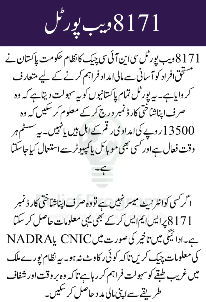 For More Information: 8171 Check Online CNIC Ehsaas Program
