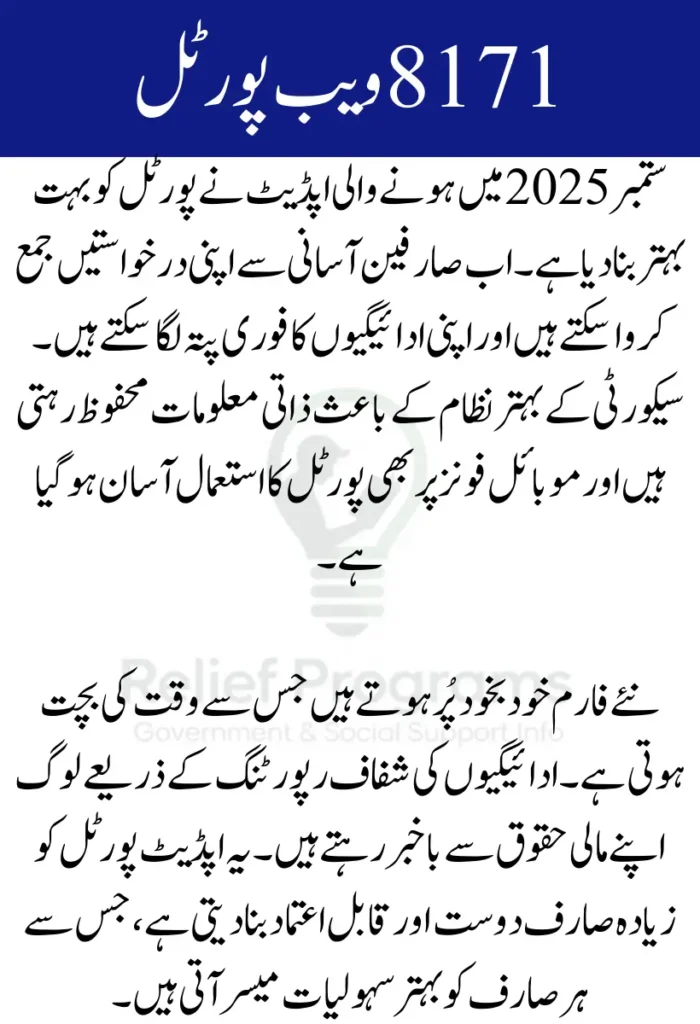 The 8171 Web Portal, a critical tool for managing social welfare benefits in Pakistan, has recently received a major update in September 2025. This update brings a range of improvements designed to simplify how users access services, check their payment statuses, and submit applications. The goal is to provide a smoother experience for beneficiaries and administrative users alike.