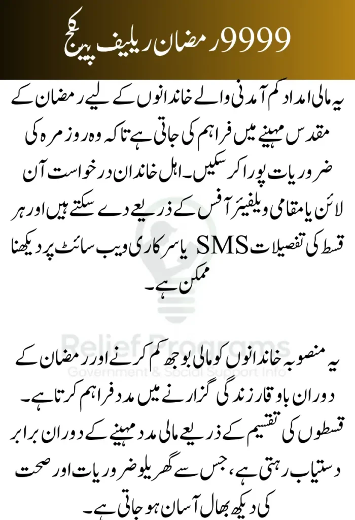 The 9999 Ramzan Relief Package provides structured, reliable, and transparent financial assistance. By following the application steps and monitoring payments, families can maximize the benefits and manage Ramadan expenses efficiently.