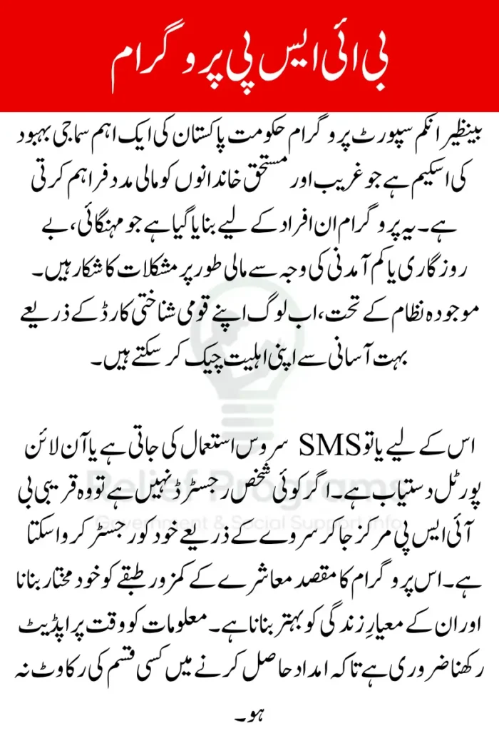 | CNIC Check via SMS | Send CNIC to 8171 to get eligibility status |