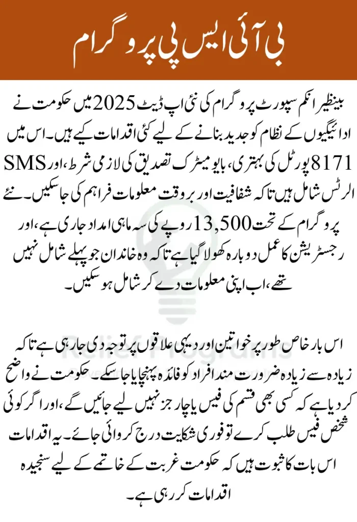 The BISP new update for 2025 brings much-needed improvements to a program that millions rely on for basic financial support. From the enhanced 8171 portal to biometric verification and clearer communication through SMS alerts, every update is designed to make the system more efficient and fair.