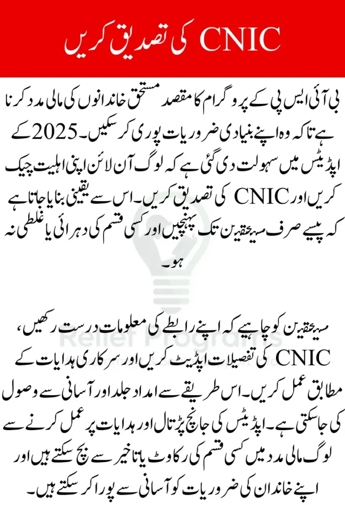 | Eligibility Check | Enter CNIC on the official BISP portal |
