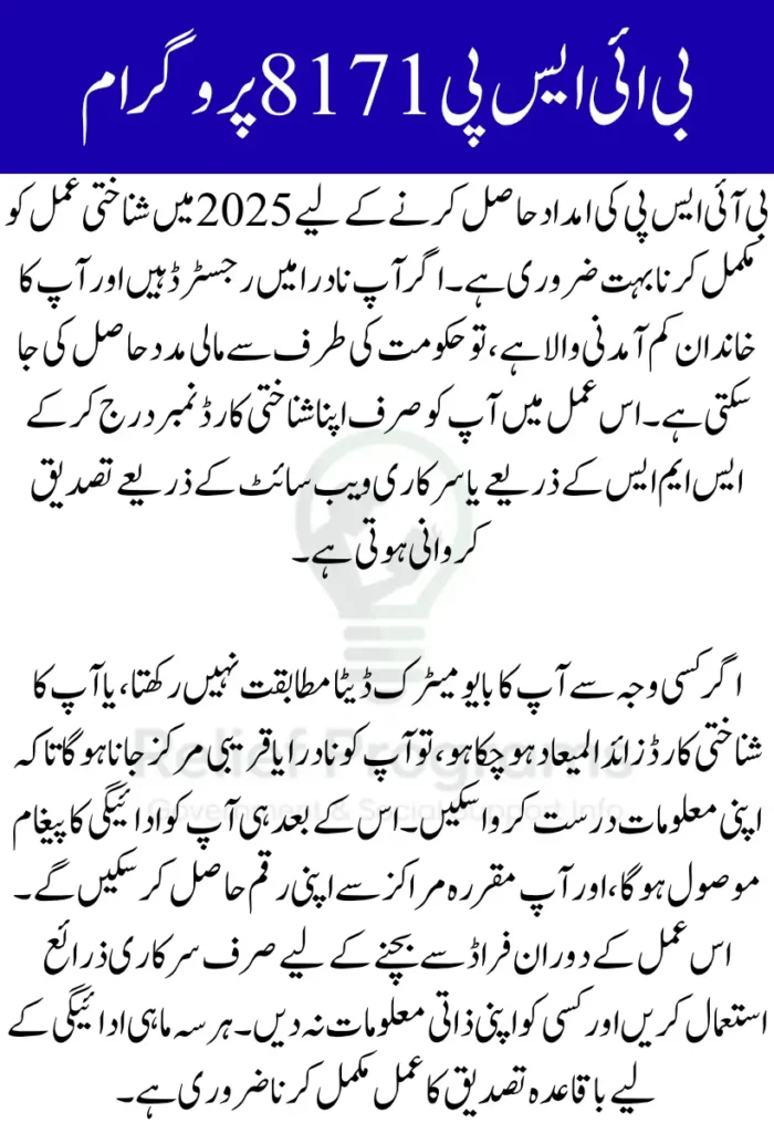 If you successfully complete the BISP 8171 Payment Verification, you’ll receive a confirmation message or status update. This allows you to collect your quarterly stipend—usually Rs. 13,500—from a designated payment center or bank agent.