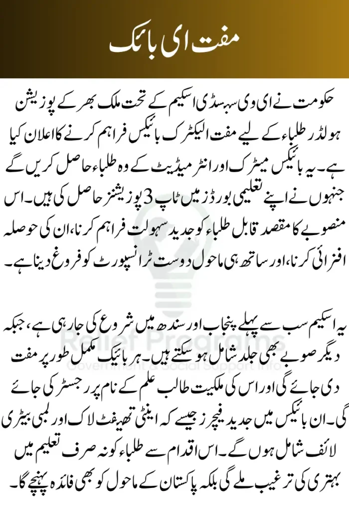 The government has launched an exciting new initiative to reward academic excellence and promote eco-friendly travel. Under the 2025 EV Subsidy Scheme, free e-bikes will be awarded to top position holders in matric and intermediate exams across government-recognized boards. This policy aims to encourage education while supporting green transportation.