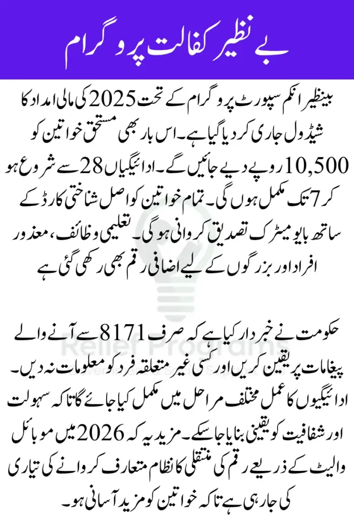Under the Benazir Kafaalat New Payment Schedule, each verified woman will receive Rs. 10,500. Additionally, special groups will get extra support depending on their household needs and verification.
