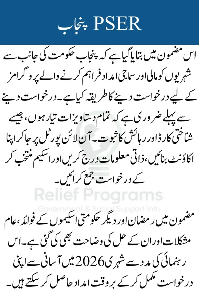 PSER Punjab Gov PK is a government initiative designed to provide financial and social support to citizens in need. The program is particularly important during Ramadan, when families may require extra assistance. In 2026, the Punjab Government emphasizes online applications to make the process transparent, efficient, and accessible. By using the official portal, applicants can track their status and receive notifications about scheme approvals.