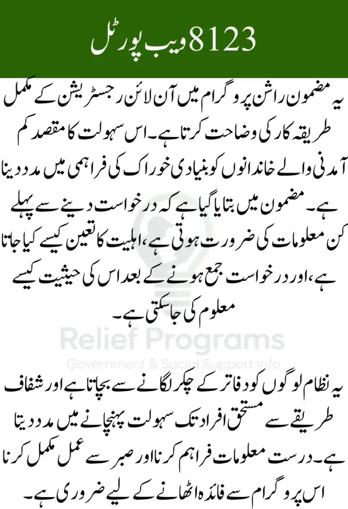 Applying for the Rashan Program through the online system is a practical step for families facing financial challenges. By carefully entering accurate information and understanding the eligibility rules, applicants can complete the process smoothly. The 8123 Web Portal ensures transparency, convenience, and fair distribution, making it easier for deserving households to receive essential food support in a timely manner.