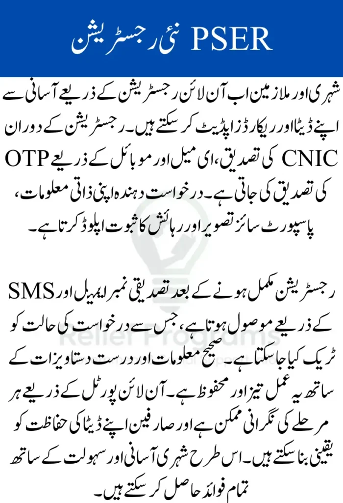 PSER New Registration 2026 allows citizens and employees to register online quickly and securely through the official PSER portal. This registration system simplifies access to government services, employee records, and citizen notifications. Using tools such as CNIC verification, OTP confirmation, and email validation, the entire process becomes faster and more accurate.
